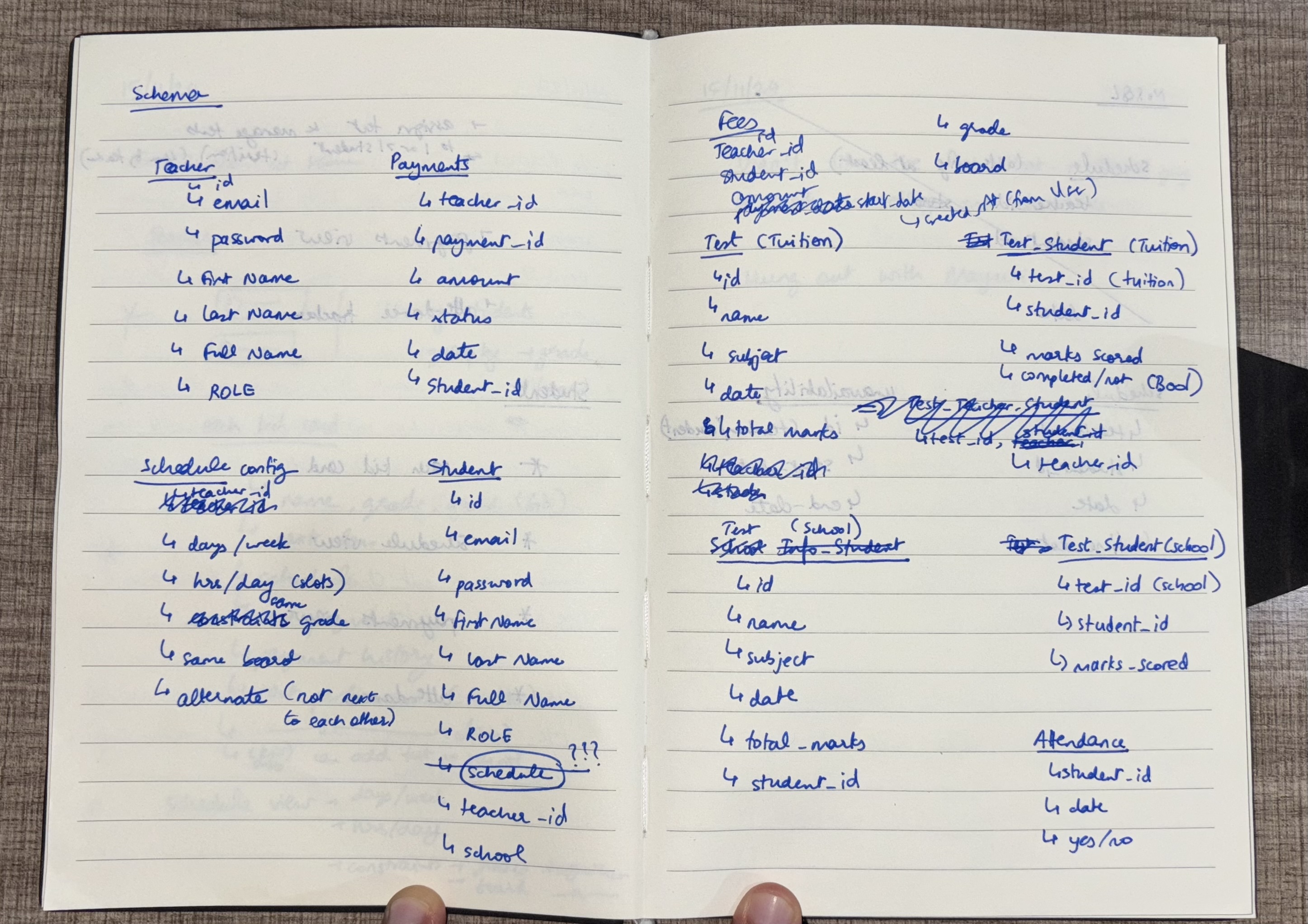 I started with listing the features and designing the schema for TeamFinder.